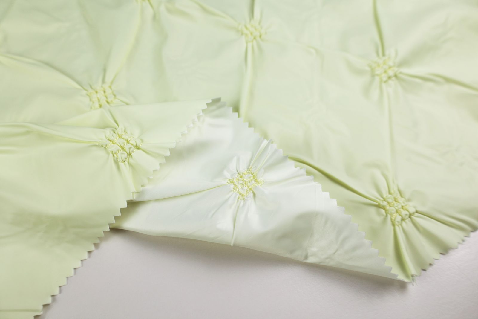 激光繡小花,加持夜光反光的蝴蝶作以點綴,花型立體,使面料賦有生機。