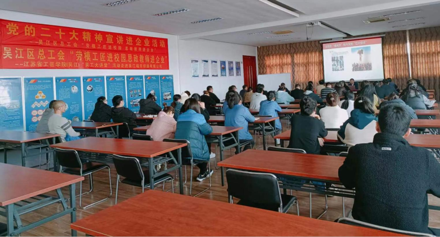 根據(jù)省委、省政府辦公廳《關(guān)于加強(qiáng)和改進(jìn)新時(shí)代江蘇產(chǎn)業(yè)工人隊(duì)伍思想政治工作的實(shí)施意見》文件精神,在全區(qū)開展“勞模工匠進(jìn)校園,思政教師進(jìn)企業(yè)”活動(dòng)要求,日前公司組織開展以《工匠精神、創(chuàng)新精神和敬業(yè)精神》為主題的培訓(xùn)活動(dòng),特邀蘇州信息職業(yè)技術(shù)學(xué)院馬克思主義學(xué)院的孟慶彬老師為我們授課,公司全體黨員、2022年技能競(jìng)賽獲獎(jiǎng)產(chǎn)業(yè)工人、2023年盛澤鎮(zhèn)最美勞動(dòng)者近60人參與培訓(xùn)。